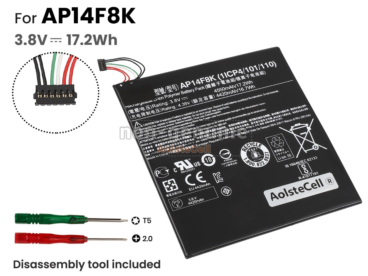 The AolsteCell AP14F8K battery is compatible with various battery part numbers and device models, not all of which are listed below. Please use the search box below to confirm.