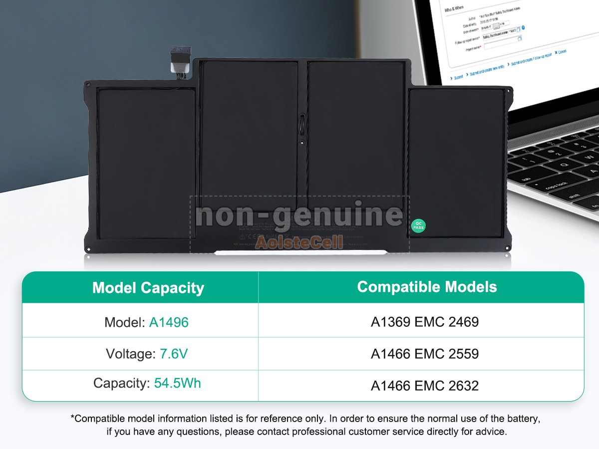 Product safety certification This battery replacement for Apple A1369(EMC 2469),A1466(EMC 2559),A1466(EMC 2632),A1466(EMC 2925).