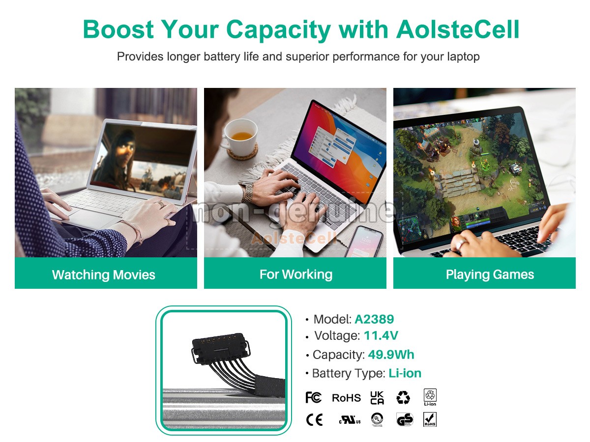 The AolsteCell A2389 battery is compatible with various battery part numbers and device models, not all of which are listed below. Please use the search box below to confirm.