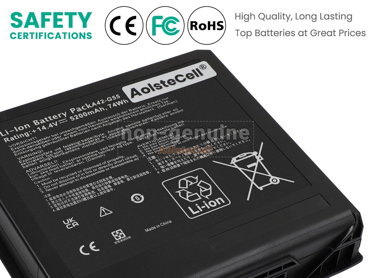 The AolsteCell A42-G55 battery is compatible with various battery part numbers and device models, not all of which are listed below. Please use the search box below to confirm.