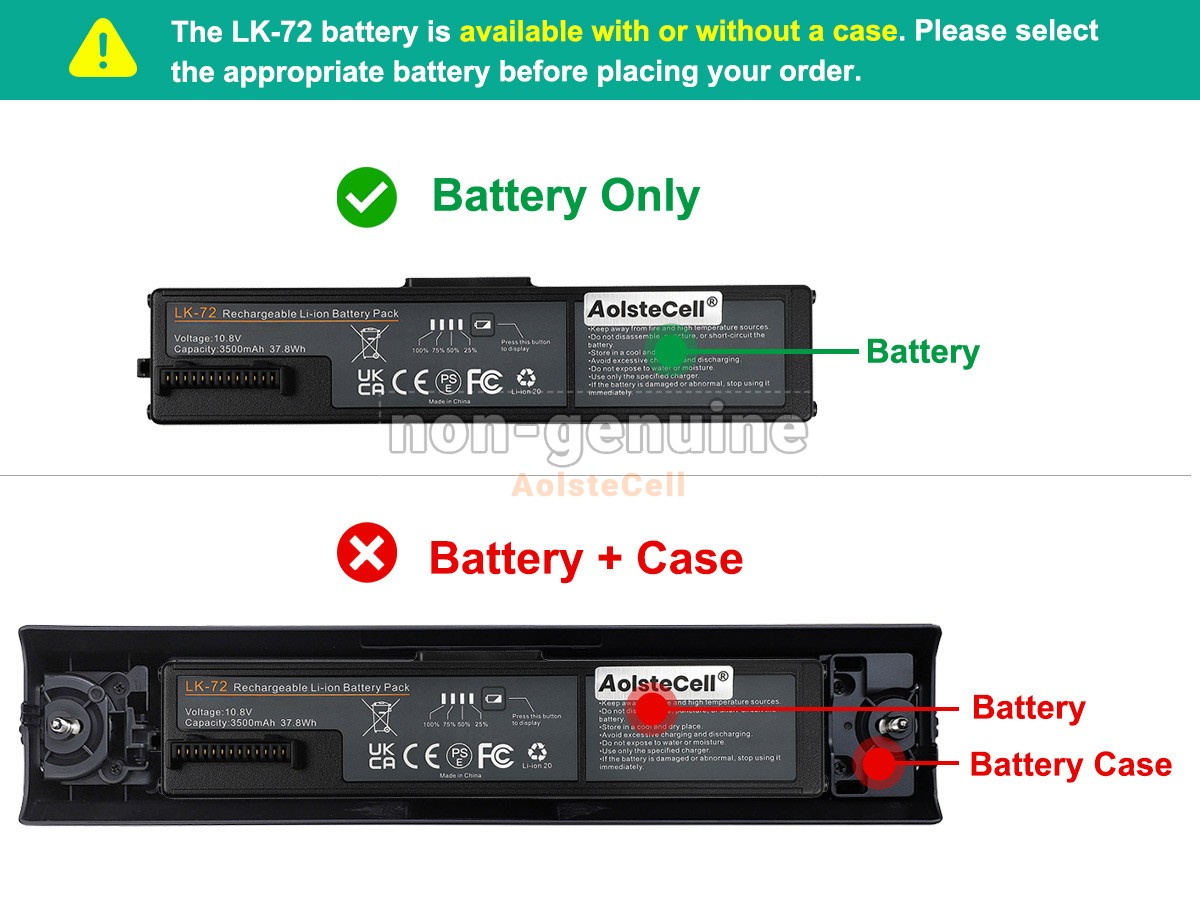 The AolsteCell LK-72 battery is compatible with various battery part numbers and device models, not all of which are listed below. Please use the search box below to confirm.