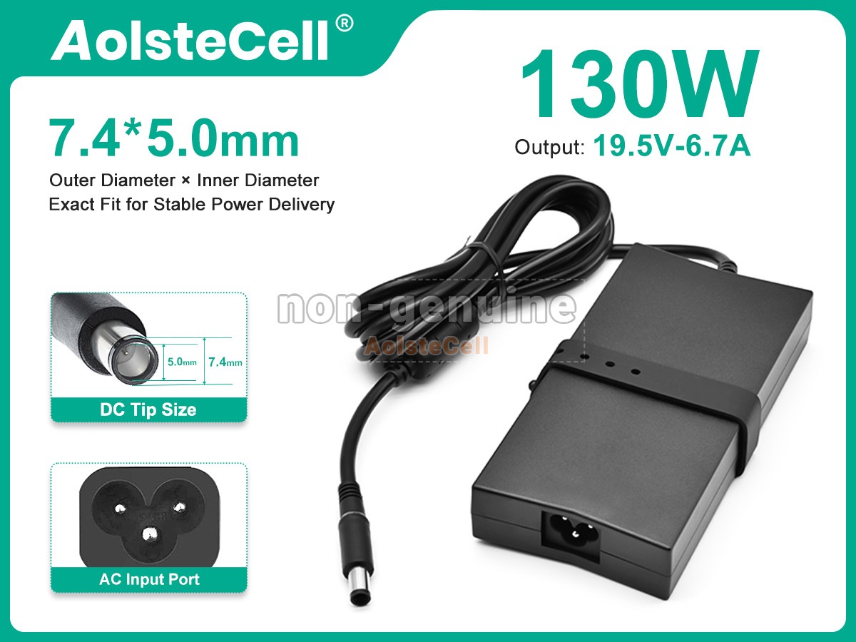 AolsteCell Adapter DL-7450-130W for Dell 130W 19.5V-6.7A 100-240V~2.5A 50/60Hz, DA130PE1-00, 130W 19.5V-6.7A 7.4*5.0mm