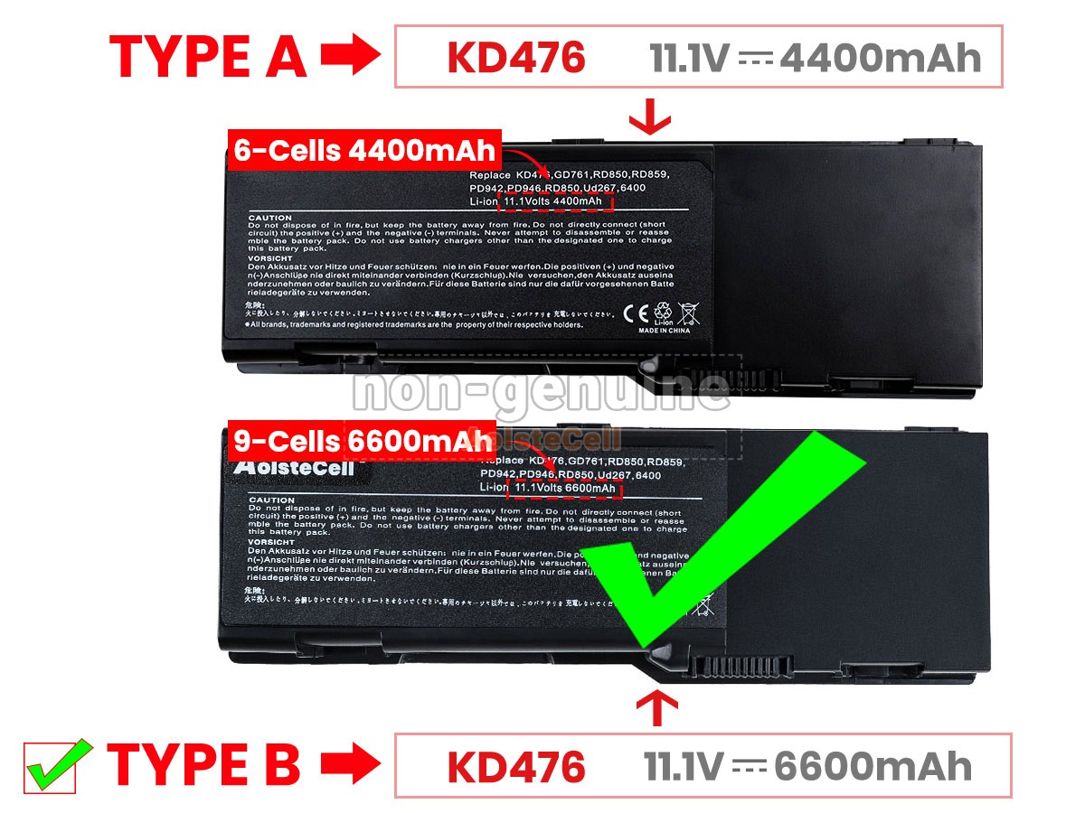 The AolsteCell INSPIRON6400 battery is compatible with various battery part numbers and device models, not all of which are listed below. Please use the search box below to confirm.