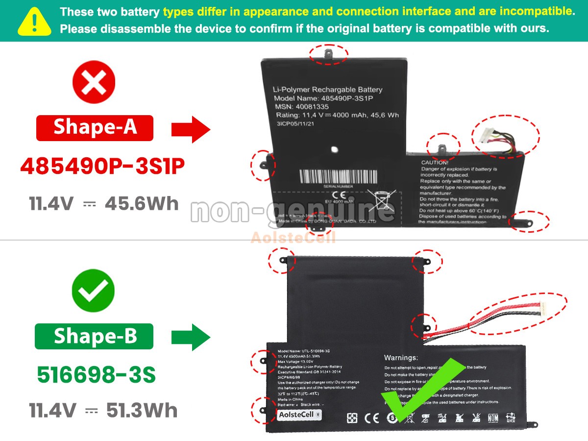 The AolsteCell 516698-3S battery is compatible with various battery part numbers and device models, not all of which are listed below. Please use the search box below to confirm.