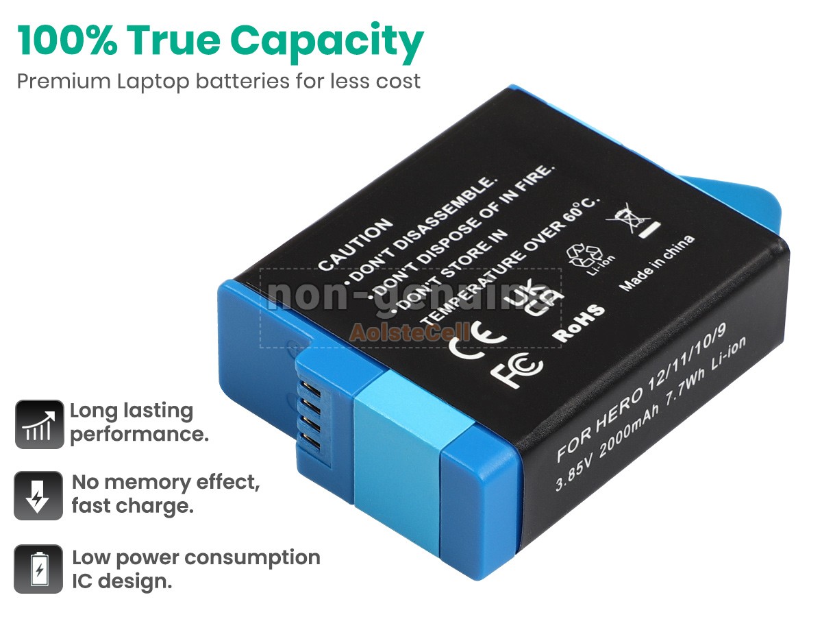 AolsteCell Battery SPBL1B-C for GoPro AHDBT-901, HERO9, HERO10, HERO11, HERO 12 Black