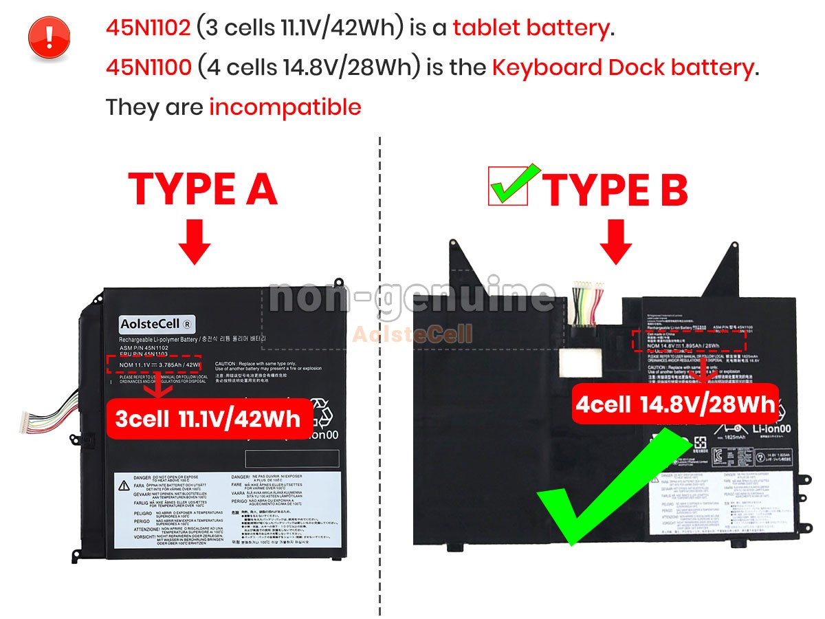 The AolsteCell 45N1102-T1 battery is compatible with various battery part numbers and device models, not all of which are listed below. Please use the search box below to confirm.