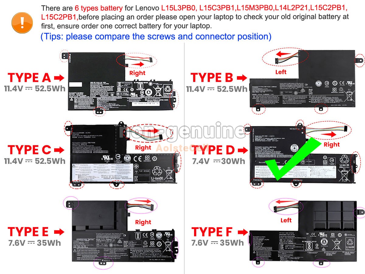 Product safety certification Before placing an order, please open your laptop to check your old battery first, ensure the screws and connector position is same as ours.