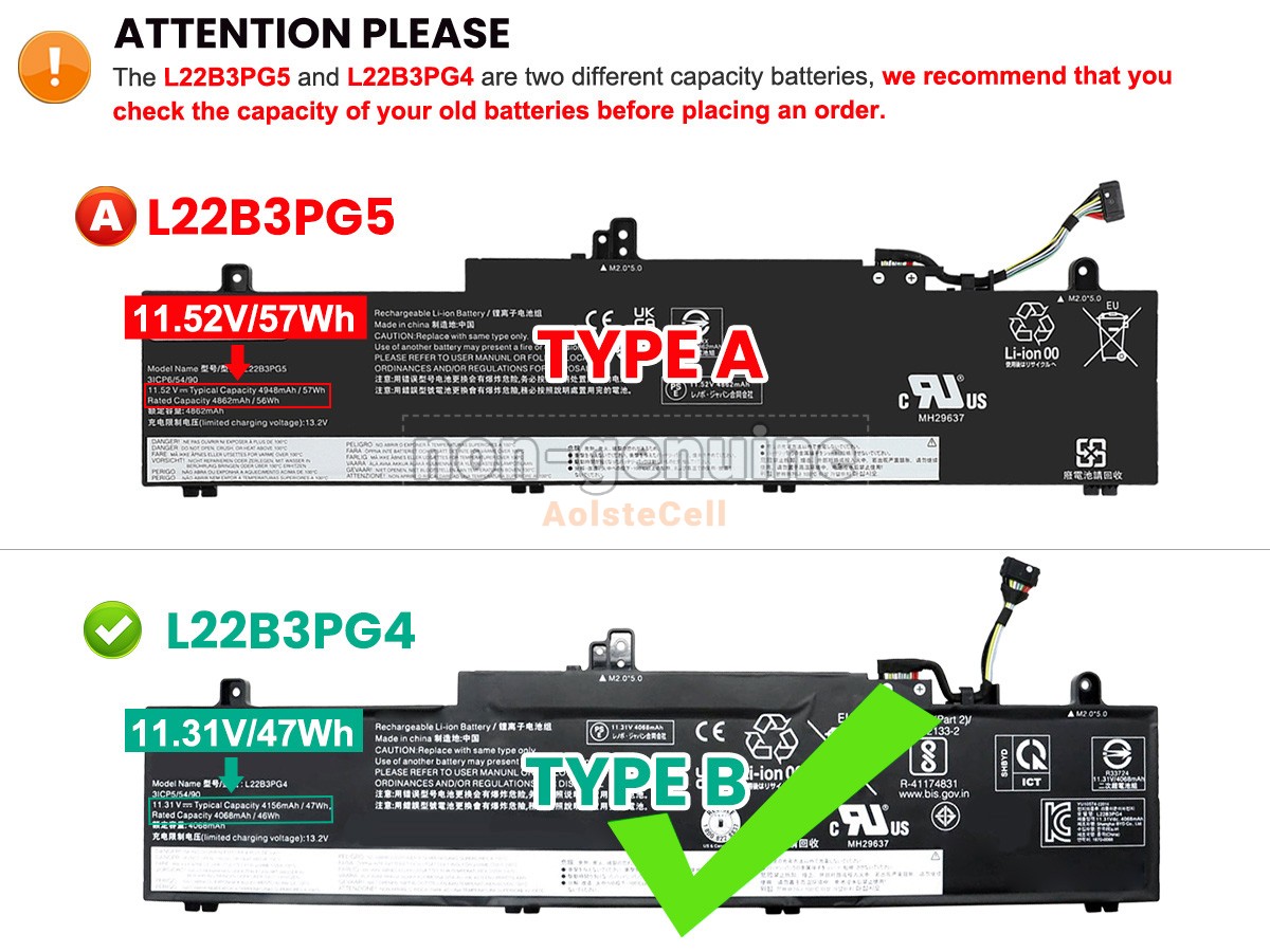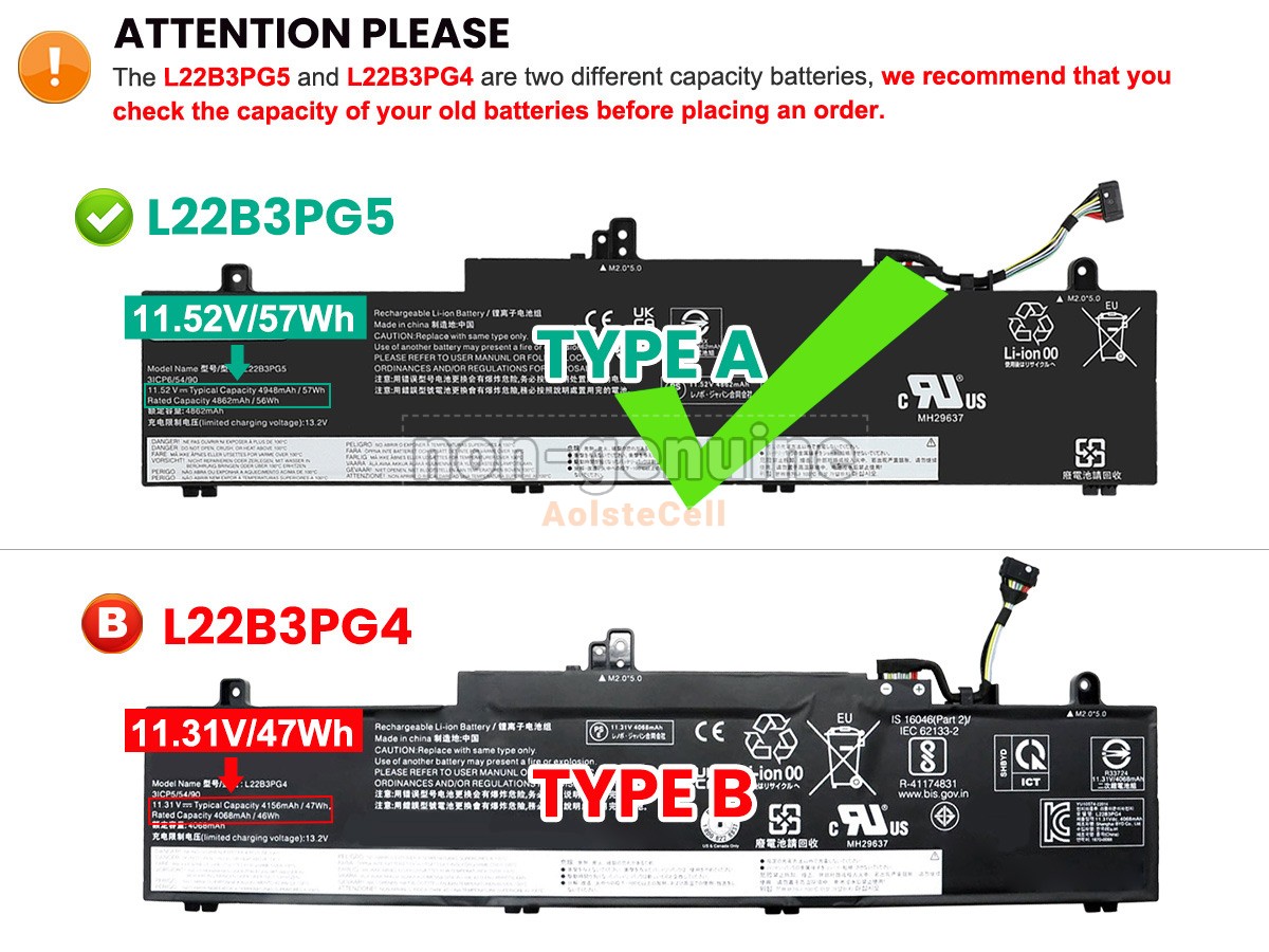 AolsteCell Battery L22M3PG5 for Lenovo L22M3PG5, 5B11N46031, L22D3PG5, L22L3PG5, ThinkPad E14 Gen 5-21JK
