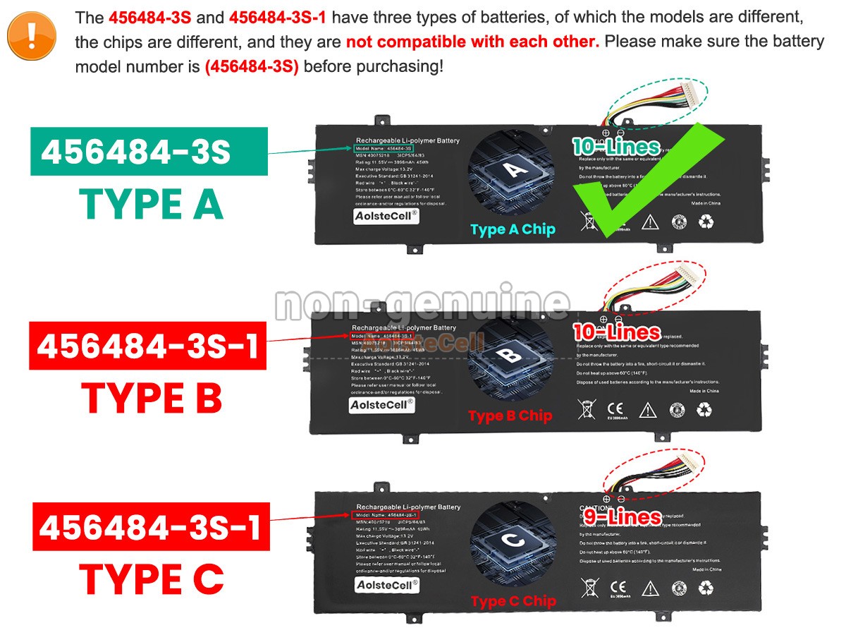 The AolsteCell 456484-3S-1 battery is compatible with various battery part numbers and device models, not all of which are listed below. Please use the search box below to confirm.