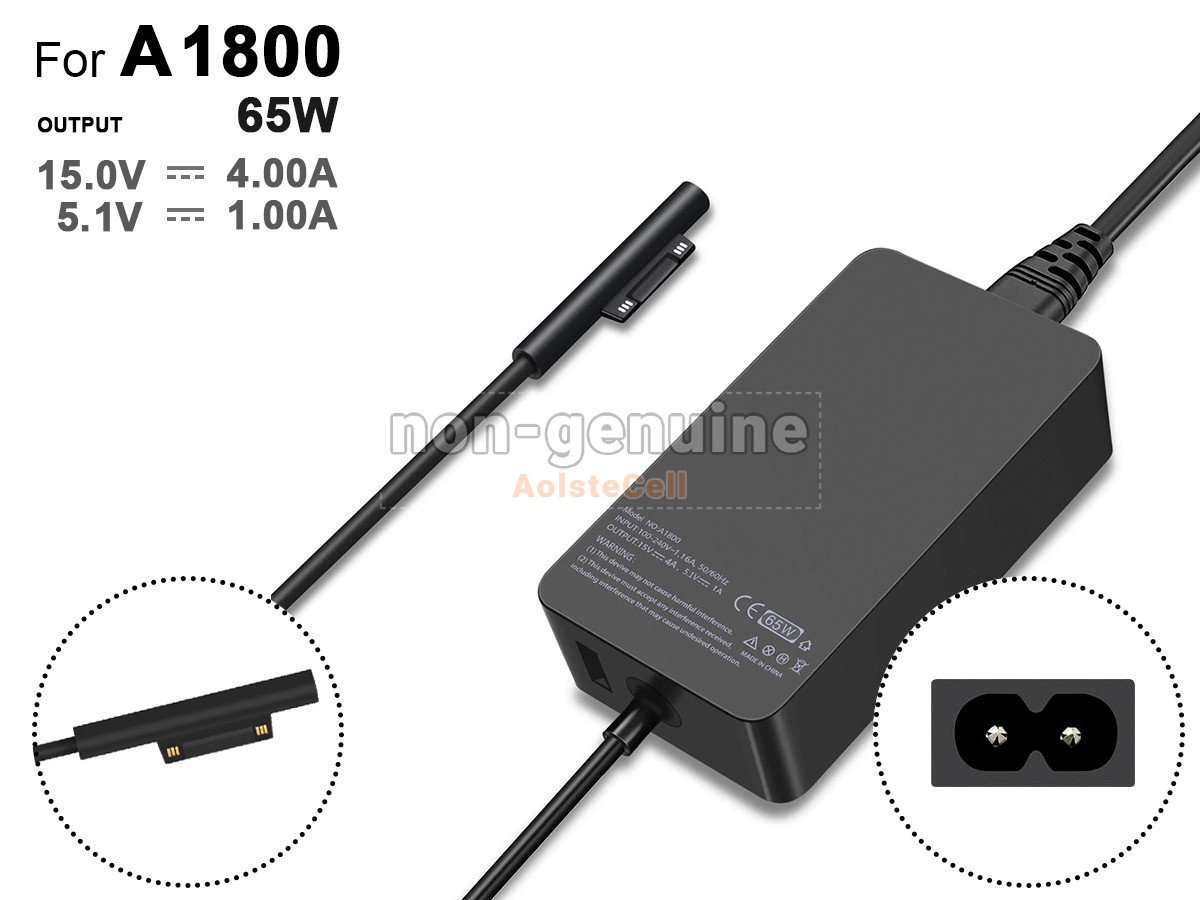 AolsteCell Adapter MIC-TYPEL-65W for Microsoft 65W 15V 4A, A1800, Surface Pro 7 Plus, Surface Pro 7+, Surface Pro 7