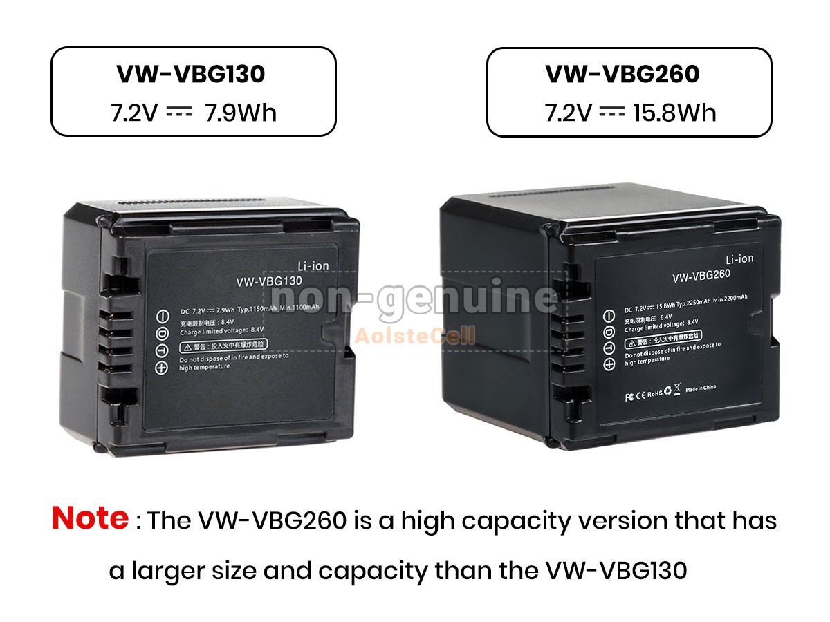 The AolsteCell VW-VBG130 battery is compatible with various battery part numbers and device models, not all of which are listed below. Please use the search box below to confirm.