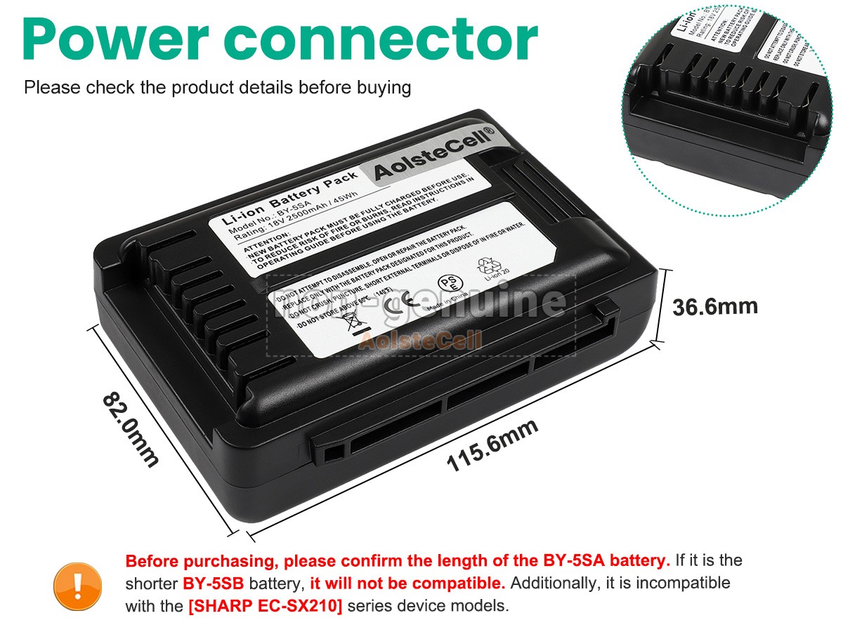 Product safety certification This battery is only compatible with the BY-S5A model. It is NOT compatible with BY-S5B.