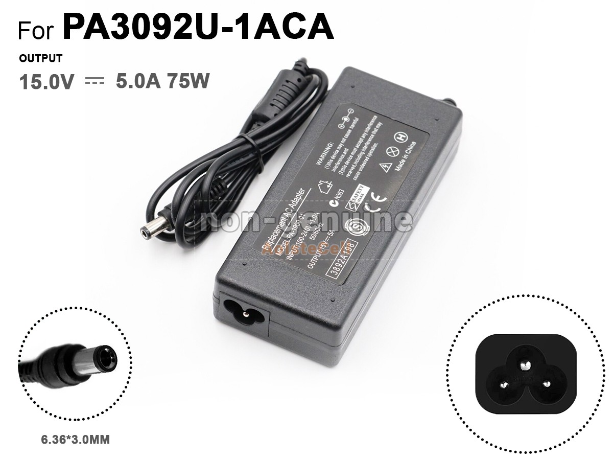 AolsteCell TO-63630-75W Adapter for Toshiba 75W 15V 5A 6.36*3.0mm, PA2438, PA2426U, PA2411U, PA2440U