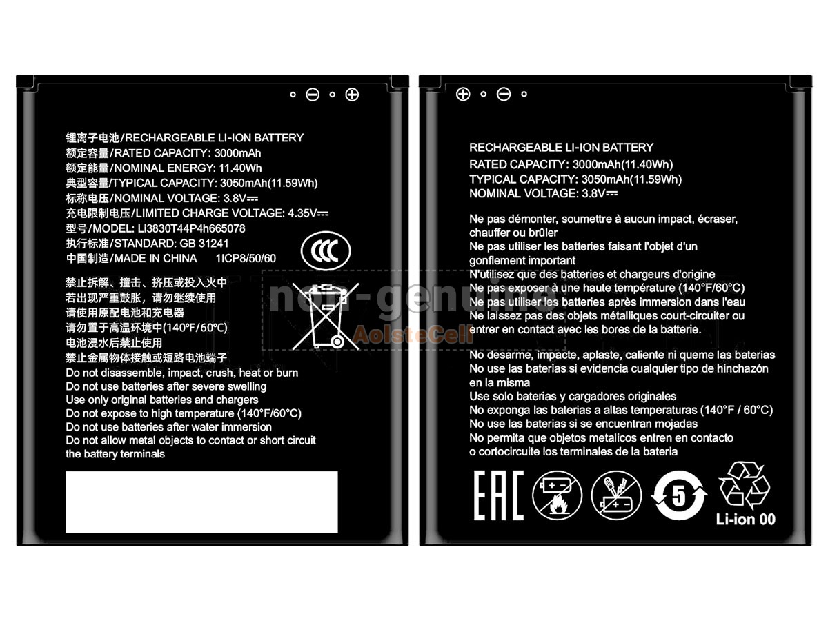 The AolsteCell LI3830T44P4H665078 battery is compatible with various battery part numbers and device models, not all of which are listed below. Please use the search box below to confirm.